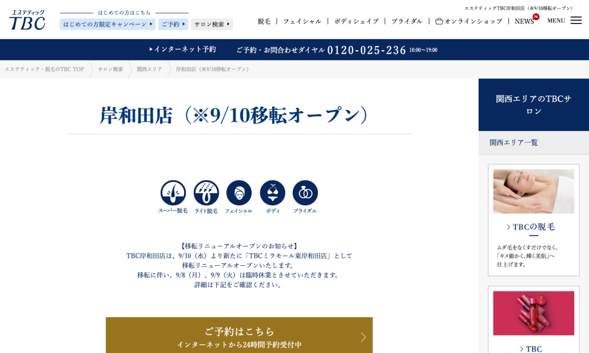 公式サイトURL | https://www.tbc.co.jp/shop/kansai/osaka/0625/ |