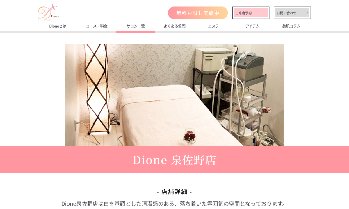 | 公式サイトURL | https://datsumousalon-dione.jp/salon/izumisano/ |