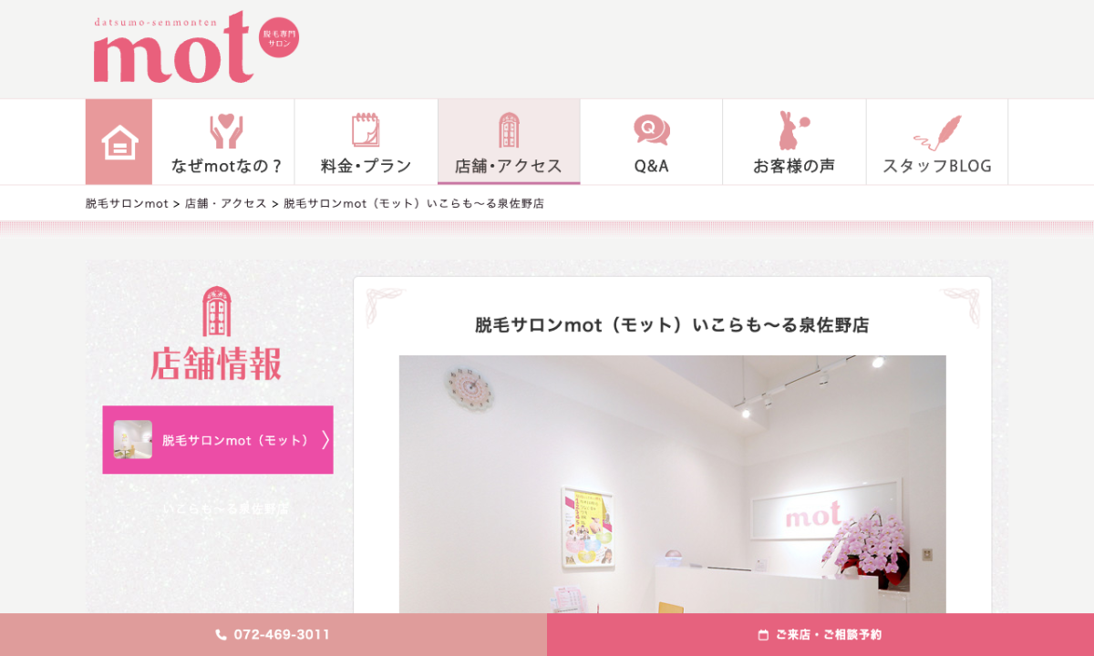 脱毛サロンmot いこらもーる泉佐野店の基本データ