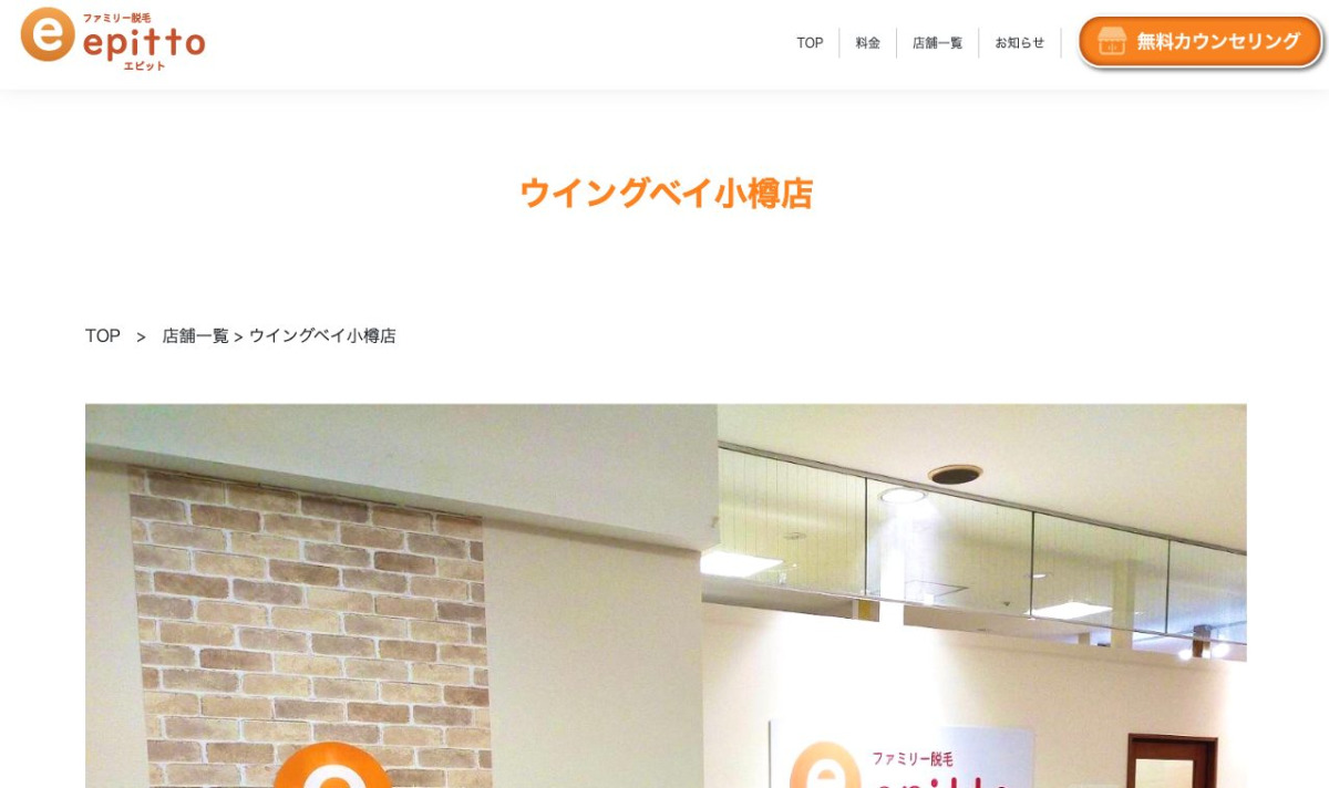 ファミリー脱毛epitto<br>ウイングベイ小樽店の基本データ