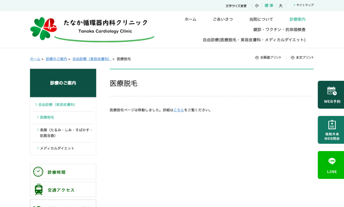 公式サイトURLhttps://www.tanaka-heart.jp/survice/beauty/datsumou/index.html