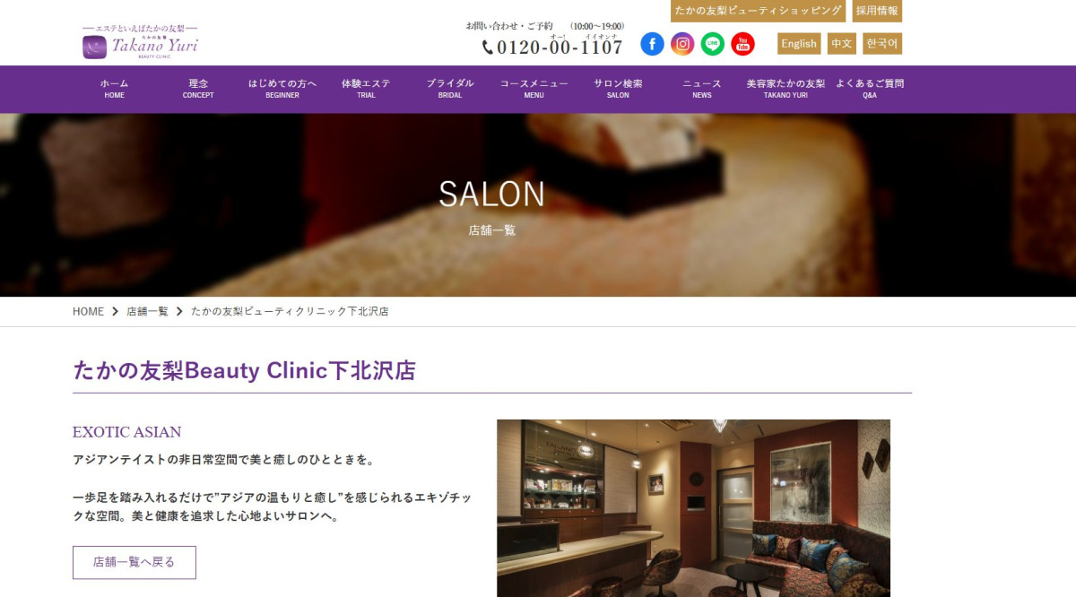 | 公式サイトURL | https://www.takanoyuri.com/salon/s_015.html |