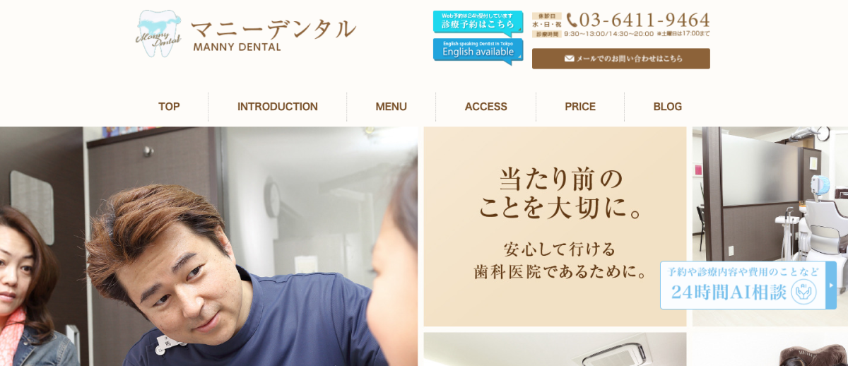 - 24時間Web予約対応、英語対応あり。平日20時まで、土曜17時まで営業。