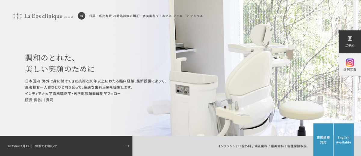 - 平日21時まで診療。恵比寿駅東口から徒歩5分。オンライン相談にも対応。