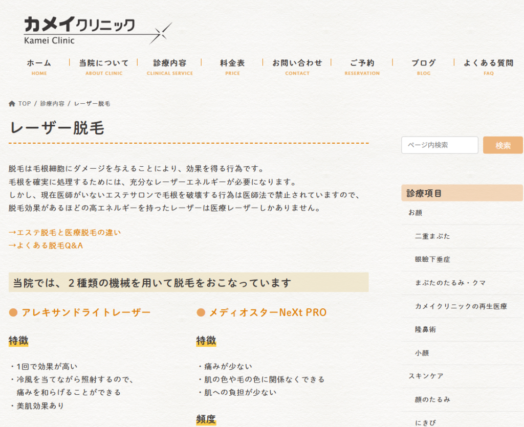 - 医療レーザー脱毛と美肌治療を提供