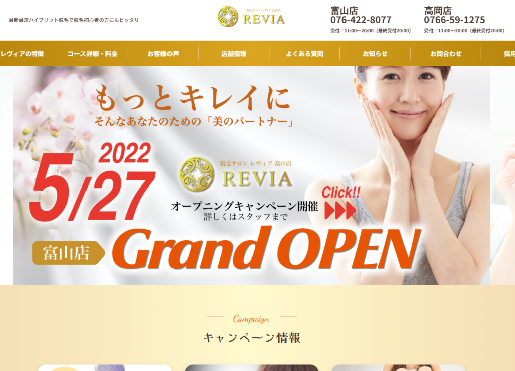 REVIA 高岡店 | 敏感肌OK・最新ハイブリッド脱毛でスピーディに美肌