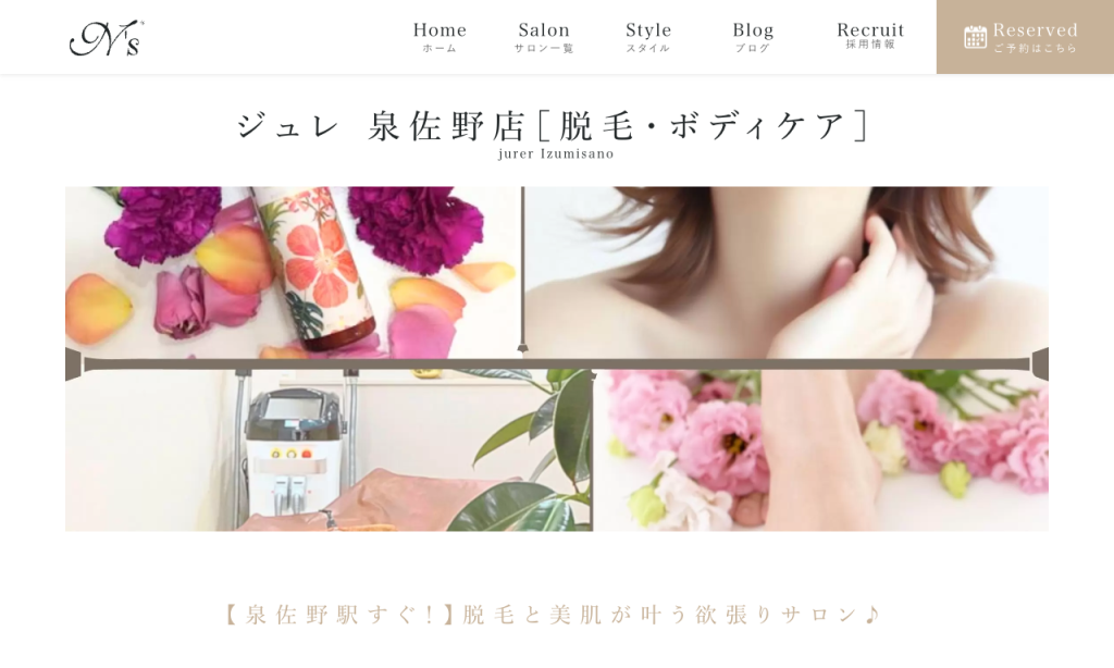 公式サイトURL | https://www.enuzu-beauty.com/salon/jurer-izumisano-datsumou/ |