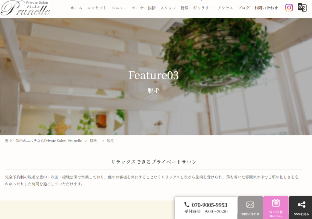 Private Salon Prunelle | “女性専用のプライベートサロン”