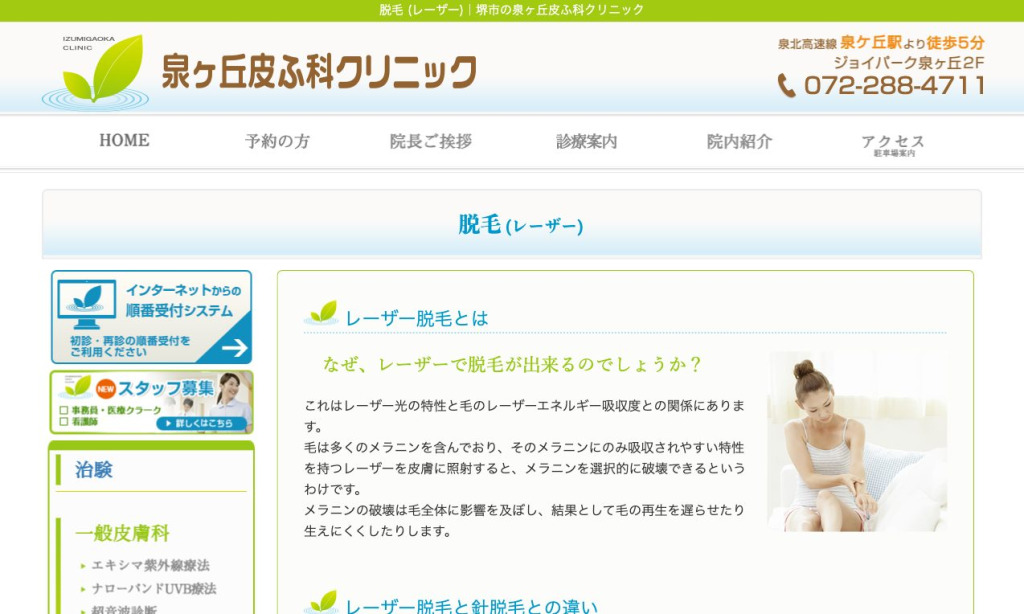 堺市で脱毛を検討している方に向けて、通いやすく安心して利用できる脱毛クリニック・サロンの情報を紹介しています。