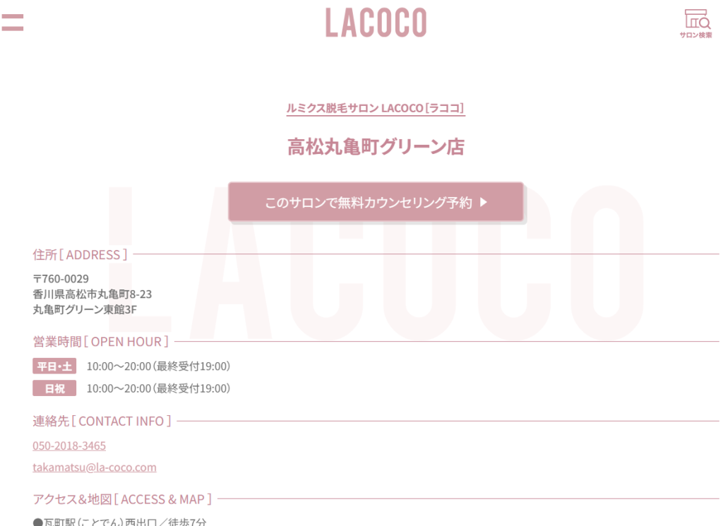 LACOCO 高松丸亀町グリーン店 | 最短30分!痛み少ないルミクス脱毛 ホットペッパービューティー