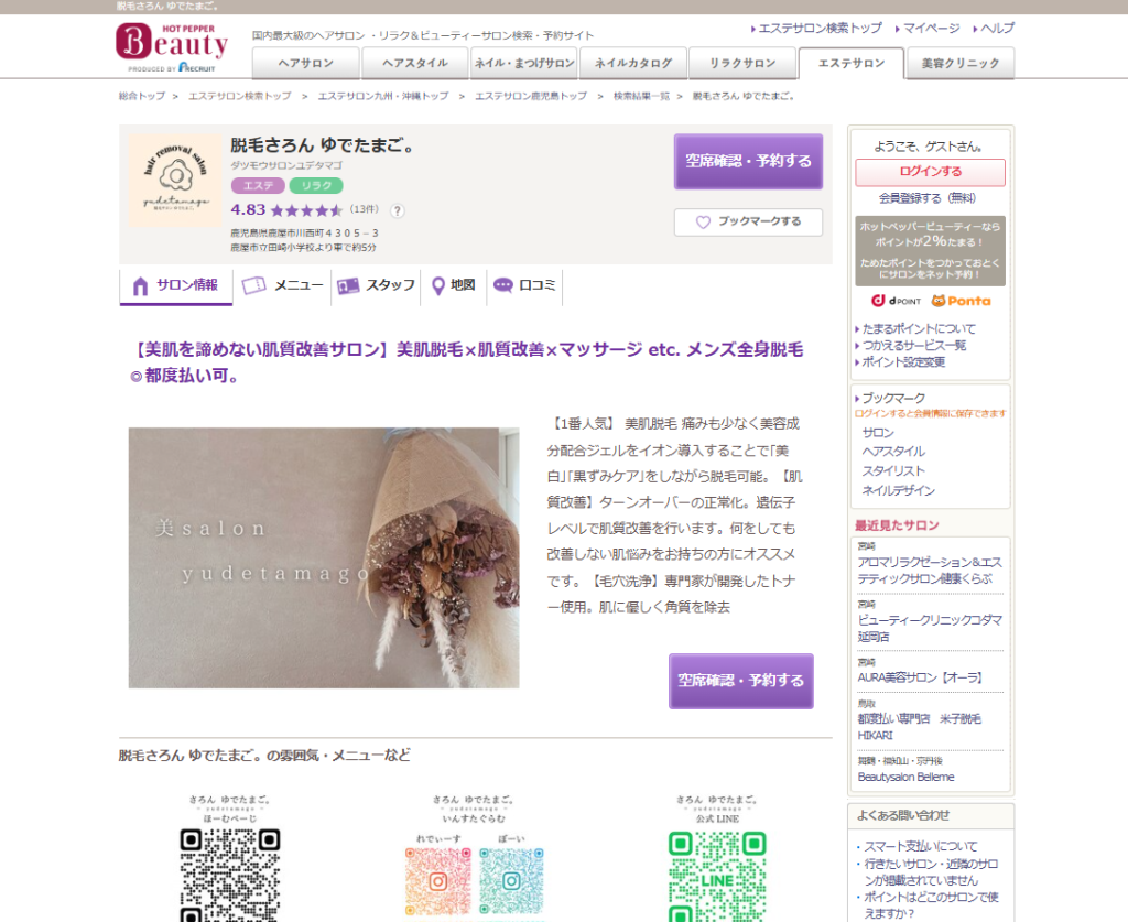 - 痩身・脱毛・ブライダルもOKの予約制サロン