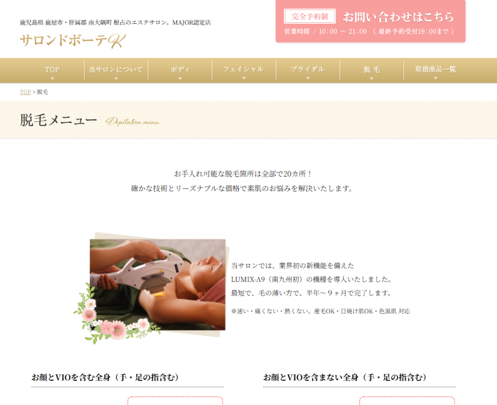 サロンドボーテ K 鹿屋店 | 業界初BBL搭載!高速脱毛で速攻キレイ