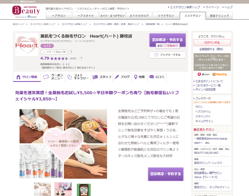 Heart 藤枝店 | 美肌をつくる脱毛サロン