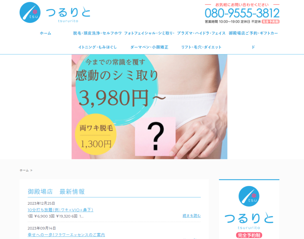 美肌脱毛サロン つるりと 御殿場店 | 「速くて痛みの少ない脱毛」